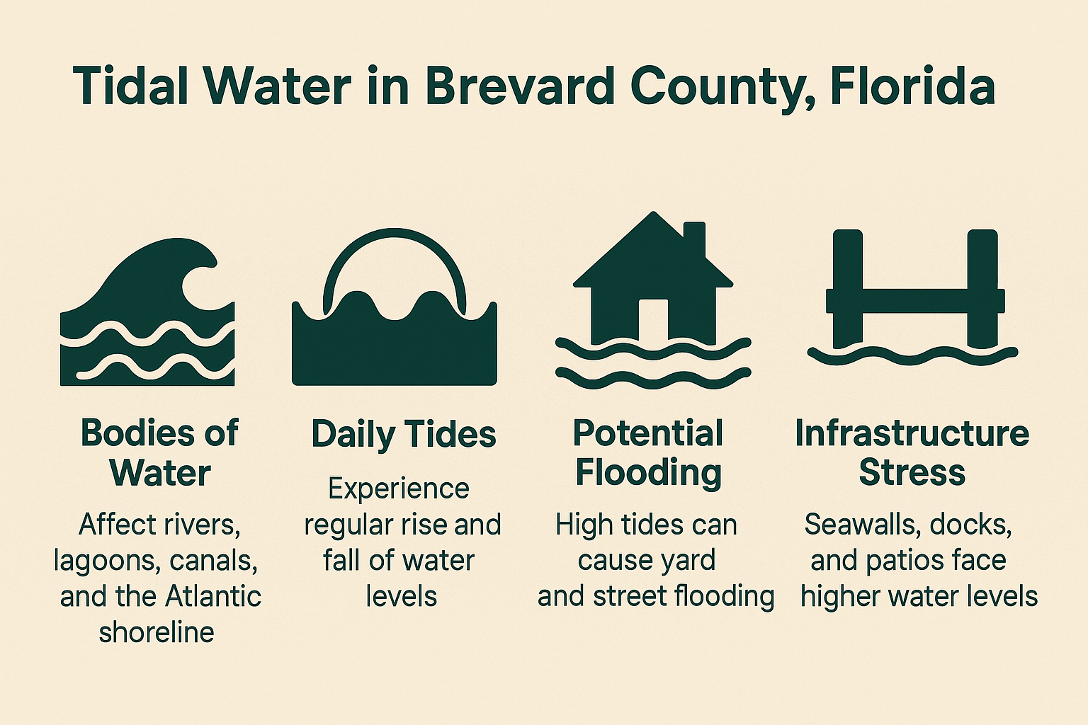 Living on the water in Merritt Island, Cocoa Beach, Satellite Beach, or anywhere along Florida’s Space Coast comes with incredible views and boating access — but it also means living on tidal water. Tidal water simply refers to any waterway influenced by the rise and fall of the Atlantic Ocean’s tides, and in Brevard County, that includes the Indian River Lagoon, Banana River (south of 528), Port Canaveral, Mosquito Lagoon, and most residential canals connected to those systems. If you own or plan to buy a waterfront home, here are the top 5 things you must know about tidal water — and how it can affect your property, insurance, safety, and long-term costs. 1. Tidal Flooding & King Tides Can Affect Your Daily Life Tides in Brevard County rise and fall twice a day, but certain times of year — especially fall and full-moon cycles — bring king tides, the highest tides of the year. These events can cause: Communities along South Tropical Trail, Sykes Creek, Cocoa Beach canals, and the Indian River Lagoon are especially vulnerable. If your home sits low, tides will affect your routine — not just storm days. 2. Seawalls, Docks & Shorelines Wear Down Faster Tidal water constantly pushes, pulls, and applies stress to your seawall, dock, pilings, and shoreline. This can lead to: Because this is tidal water (state-owned submerged land), repairs usually require: Seawall replacement in Brevard County can run $1,200–$2,500 per linear foot, and dock repairs must meet strict environmental standards. 3. Flood Zones & Insurance Are More Expensive on Tidal Water Most tidal-water neighborhoods fall into AE, VE, or Coastal A flood zones, which means: Older homes built below Base Flood Elevation can see costs skyrocket to: If you’re budgeting for waterfront living, insurance is one of the biggest financial factors. 4. Permits, Regulations & Submerged Land Rules Apply If your home touches tidal water, you do not own the land under the water. The State of Florida does. That means permits or approvals are usually required for: You may also need a: For new homeowners, these rules come as a surprise — and they add time and cost to every waterfront project. 5. Saltwater & Tidal Movement Increase Maintenance Costs Saltwater is harsh, and tide-driven water movement makes it even more damaging. Tidal homeowners deal with: Waterfront living is beautiful, but maintenance is a non-stop part of the lifestyle. Final Thoughts Tidal water shapes almost every part of waterfront living in Brevard County — from your seawall and dock to insurance, permitting, and daily access. Whether you’re living on the Indian River Lagoon, the Banana River, Sykes Creek, or a Cocoa Beach canal, understanding these tidal effects helps you plan better, protect your investment, and enjoy waterfront life with confidence. Q and A: How do I know if my Merritt Island or Cocoa Beach home is on tidal water? If your property connects to the Indian River Lagoon, Banana River, Mosquito Lagoon, Port Canaveral, or any Cocoa Beach/Merritt Island canal with boat access, it’s almost always tidal. You can confirm by checking local tide charts—if your water levels rise and fall twice a day, you’re on tidal water. Does tidal water increase flood insurance costs in Brevard County? Yes. Homes on tidal water frequently fall into FEMA AE or VE flood zones, which carry higher flood insurance premiums due to storm surge, king tide flooding, and tidal flow patterns. Older homes built below Base Flood Elevation may have significantly higher costs. Are docks and seawalls regulated differently on tidal-water properties? Absolutely. In tidal areas, the State of Florida owns the submerged land under the water. That means any dock, boat lift, seawall repair, or shoreline work often requires DEP approval, Army Corps permits, and sometimes a submerged-land lease. These rules protect waterways and can affect project timelines and costs.